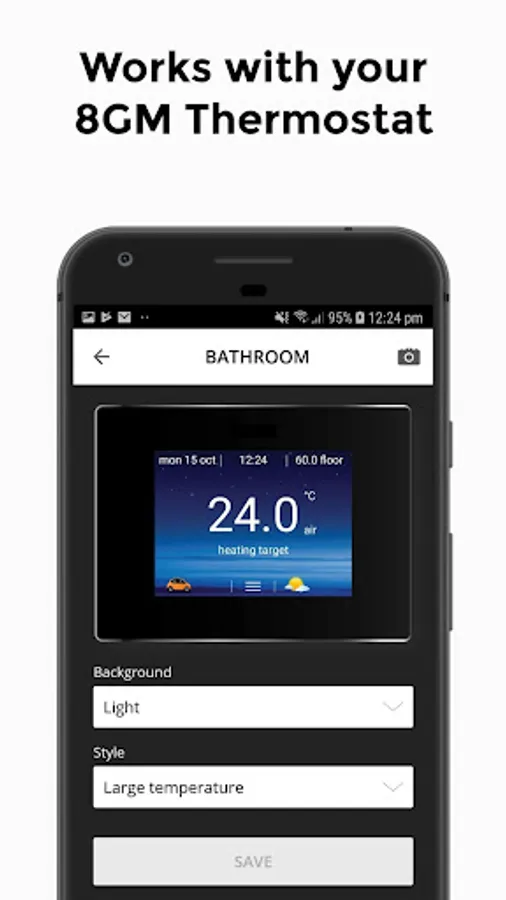 The 8GM thermostat for underfloor heating is designed to look great in beautiful spaces with its high gloss fascia and bevelled chrome edges. The 8GM features a clear, full-colour touchscreen that can be customised with different themes and personal photo backgrounds.