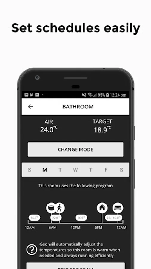 Geo technology works with your phone to ensure sure your heating is automatically warm just as you arrive and running efficiently when you’re away.