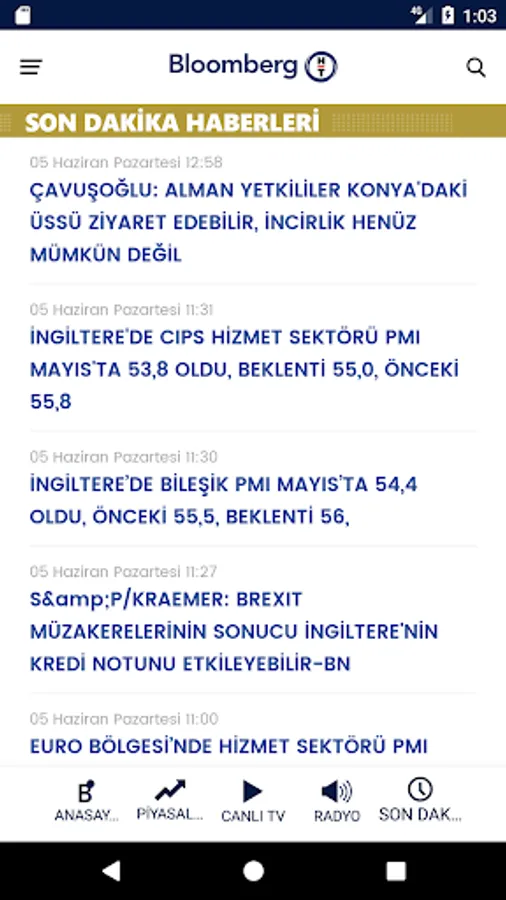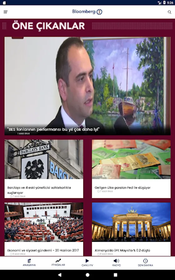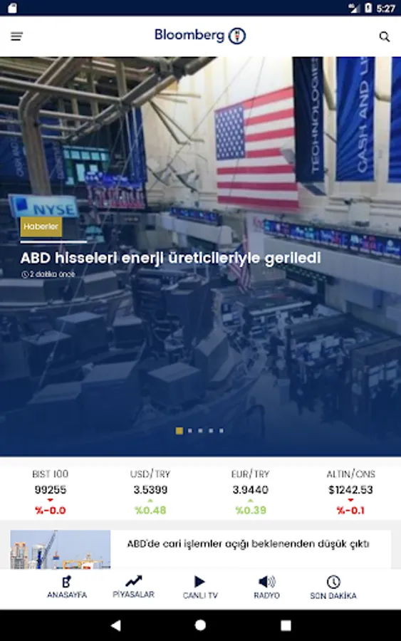 Bloomberg HT is the only economy broadcast platform in Turkey with televison, radio and web. With Bloomberg HT app; watch and listen broadcasts on tv & radio; read featured and trending stories at Bloomberg HT web site rapidly.