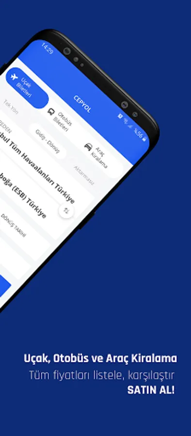 Cepyol is your personal travel agency that allows you to easily buy domestic flight tickets, international flight tickets and bus tickets, compare airline and bus companies' tickets in detail on a single screen, and find the most suitable ticket.