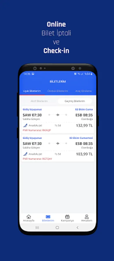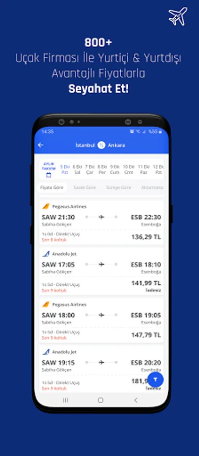 You can buy domestic and international flight tickets with Turkish Airlines, Anadolu Jet, Pegasus, Sun Express and more than 800 airlines with Best Mobile Application Award Winner Cepyol (Tourism Technologies Summit).