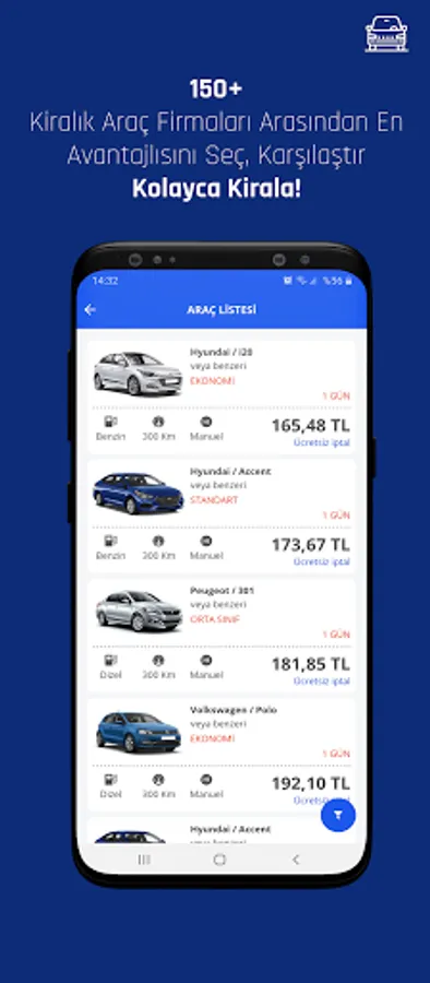 With 150+ rental car companies, more than 7000 rental car networks in 71 provinces and more than 700 locations, you can easily rent a car by comparing car rental transactions on a single screen.