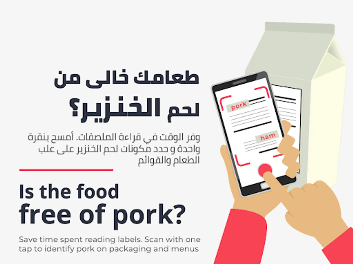 PorkCheck uses AI-based text recognition to identify any indication of pork in ingredient lists, nutrition tables, menus, and recipes.