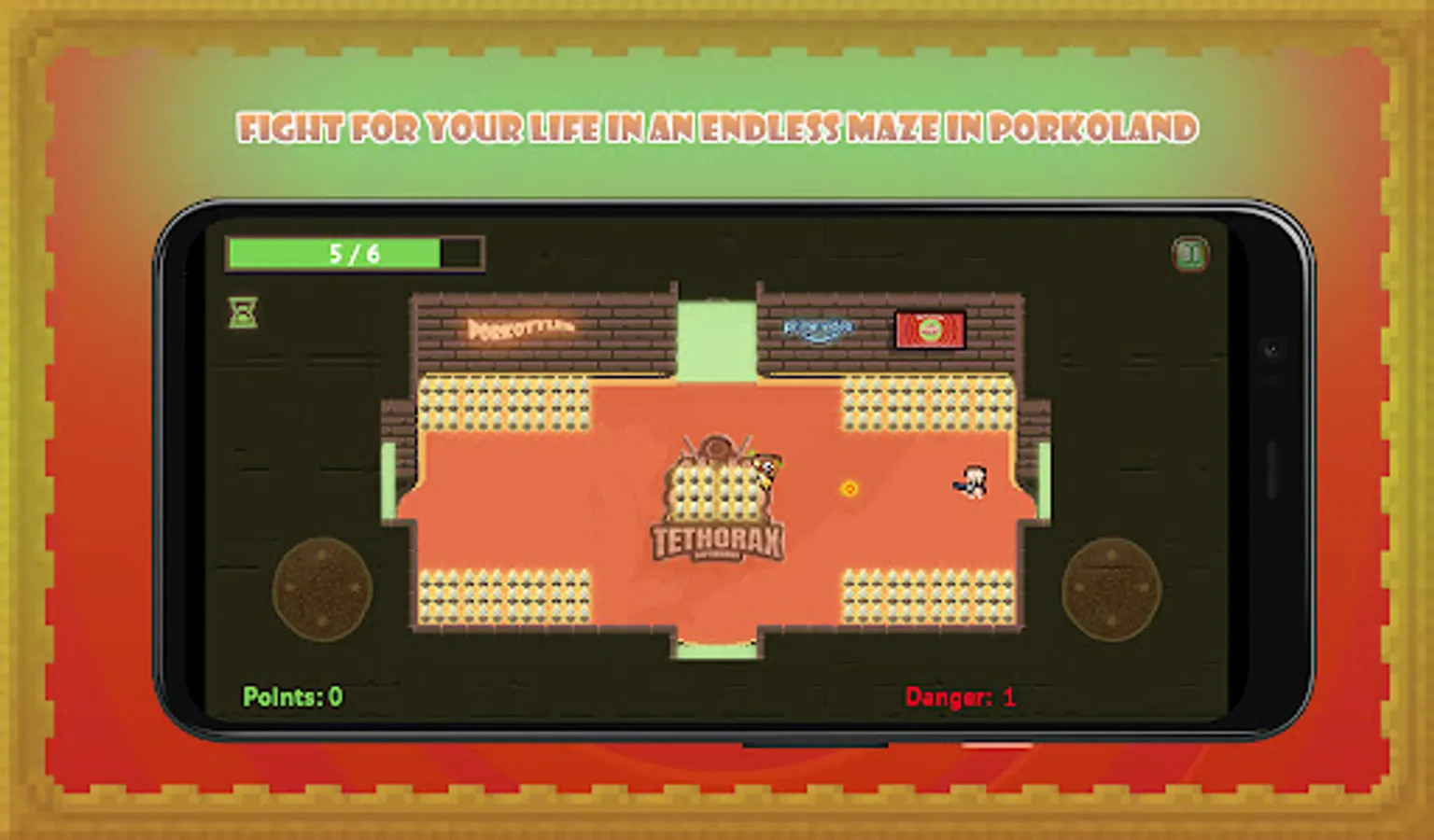 Hi there stranger. Welcome to Porkoland! In this twisted realm of existence you will need to fight infinite hordes of edible enemies and gather powerful upgrades. Be careful though. Your enemies will grow angrier the more you attack them. Make sure to dodge their fireballs and stay alive. Can you do it?