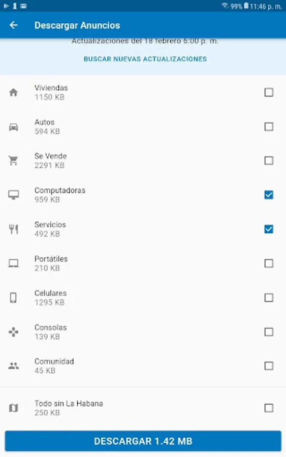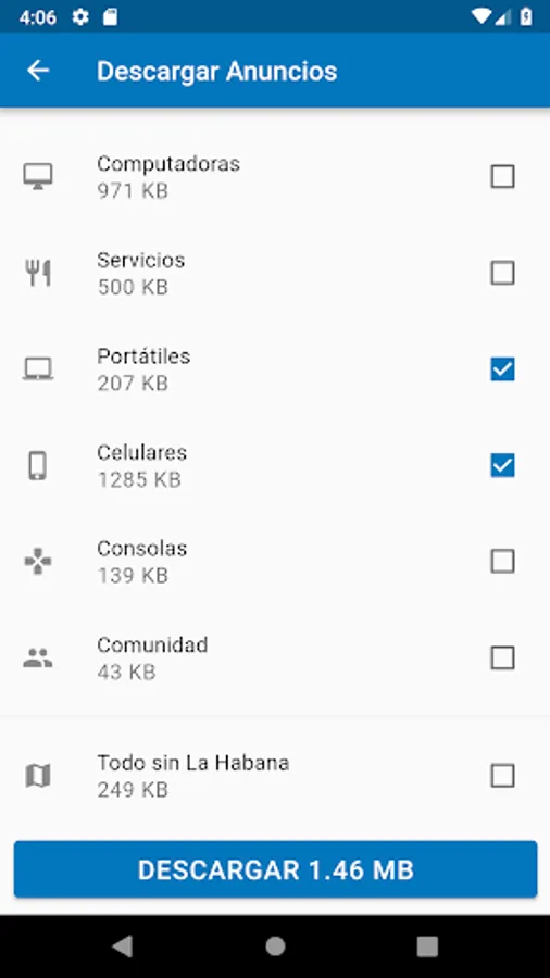 - Download of Ads: You can select only the categories in which you are interested in buying, saving time and data consumption.