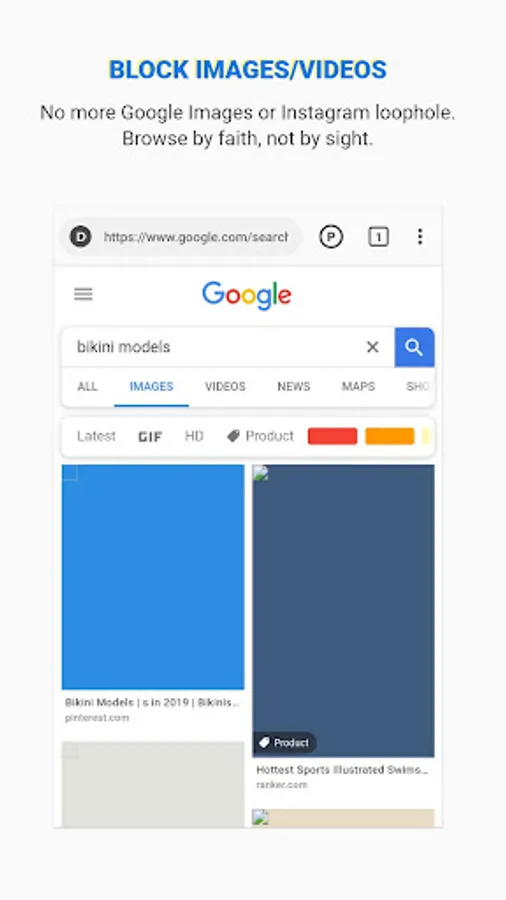 Browse by faith, not by sight. No more "stumbling" across risque Instagram pics and later ending up on a porn binge. No more Sports Illustrated or Google Images loophole. Go visual-free!