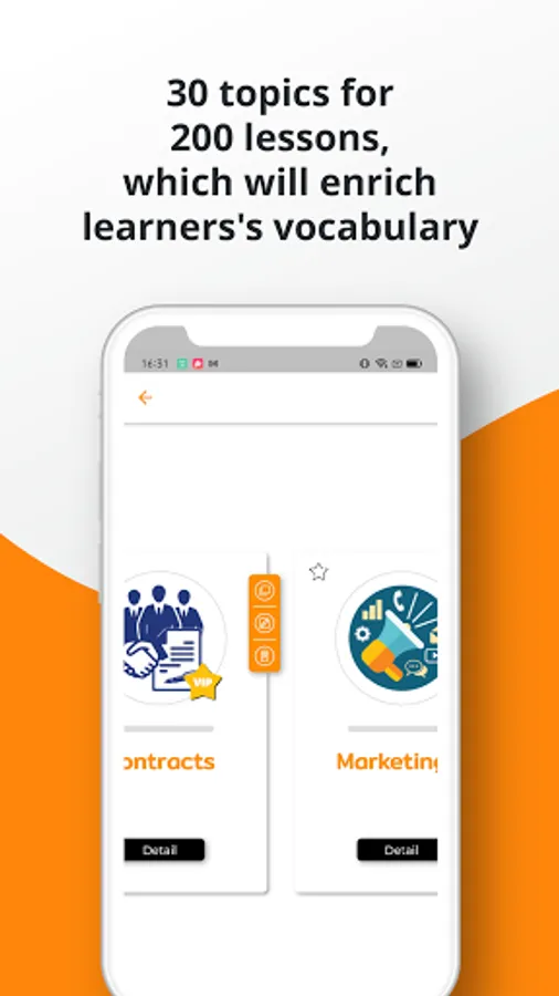 - 10 practical topics divided into 145 lessons with vocabulary in various themes to help you significantly enrich your vocabulary