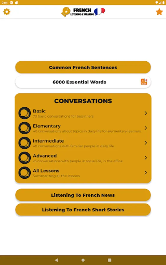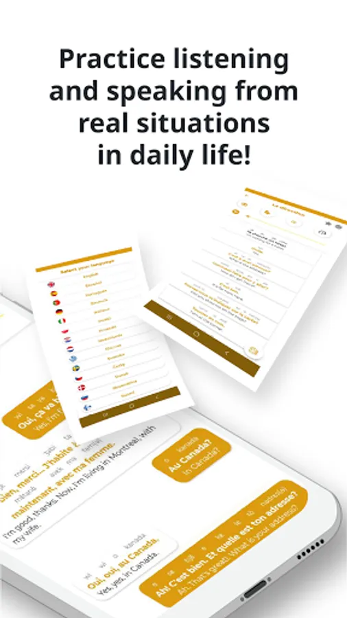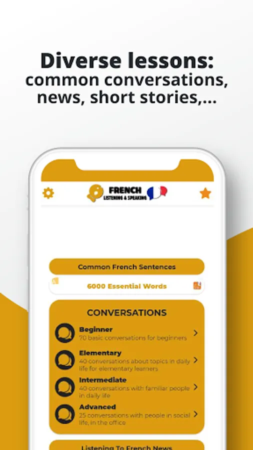 "Learn French - Listening And Speaking" is one of PORO’s ongoing apps for self-learners who want to speak French easily and effectively. With 750 daily dialogs, a list of lessons with various topics from greeting, introduction, shopping, business conversation, family talks, etc…. It's suitable for all French learners from beginner to intermediate and advanced learners to practice speaking French.