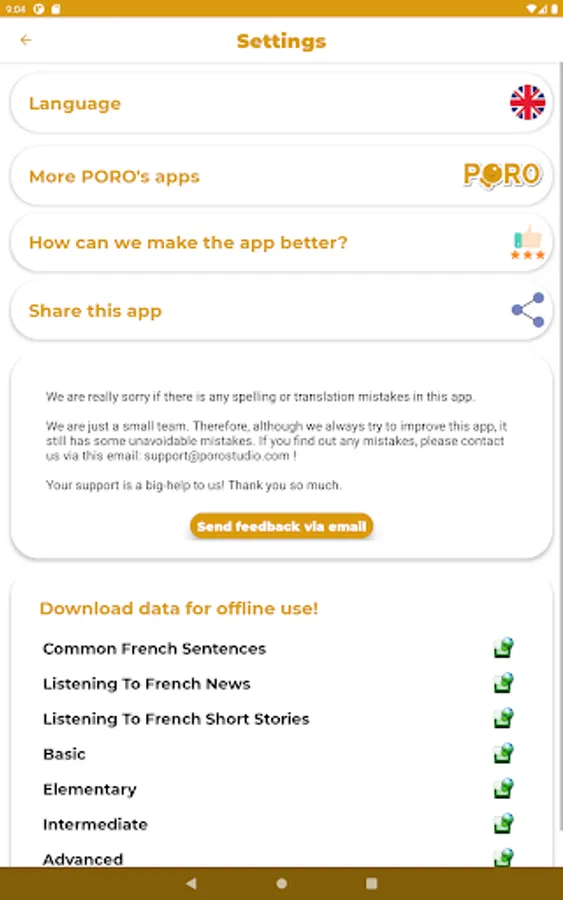“Learn French - Listening And Speaking” App is still in the developing process, so we hope to receive your contributed comment to make it better. We are a team that loves the French language and always try to share our love with the community, so if you like this app then please take a moment to rate 5 stars for it! You can also contact us by commenting or clicking the feedback button on the options screen.