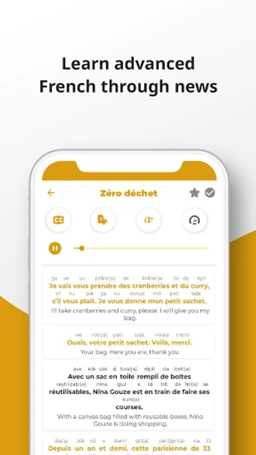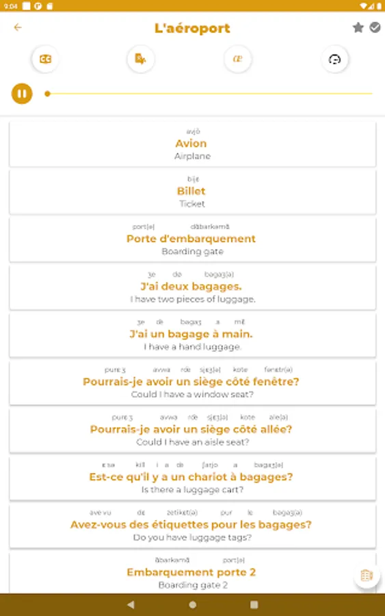 Enjoy practicing French while driving or traveling…, you just need to turn on the app and click on playlist mode.