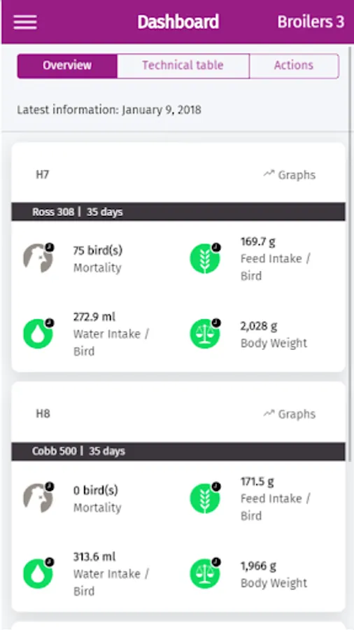 Using Big Data, biostatistics, and smart algorithms, the Porphyrio® software provides the digital platform you need to further improve and optimize your poultry production and business processes. The system is developed in such a way that it is operable for any kind of organization - from an individual farmer to a vertically integrated producer.
