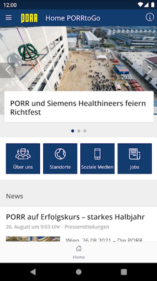 Thanks to push notifications, you won't miss any exciting company news. Stay in contact with us and find out more about the world of PORR.