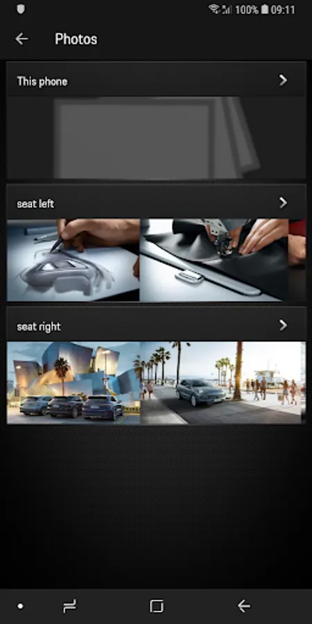 Stream content stored on a smartphone (photos, videos or music) on one or two Porsche Rear Seat Entertainment VI. The content is sent to Porsche Rear Seat Entertainment VI via DLNA streaming.