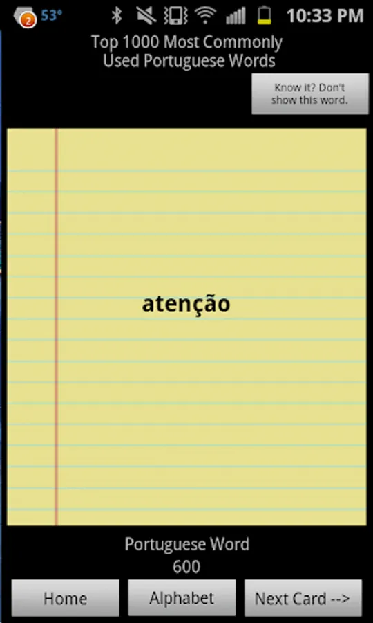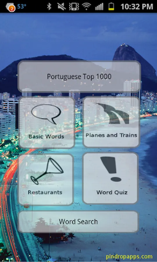 Easy Portuguese is a 4-in-1 application. You’ll study the 1000 most used Portuguese words, but also find the dictionary like search feature useful for finding one word in particular. After you’ve learned a few words, check out the quiz to further reinforce your learning or even take the knowledge test to see how fluent you are! Maybe you just want to learn a phrase or two for your next trip? There are useful travel phrases in a separate section, food and restaurants also, and a basic words category to learn some everyday phrases to use in shops, homes, public places or with new friends.
