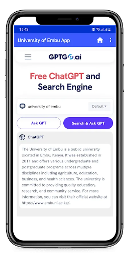 The University of Embu App Helps you Access Student portal with a Simple Click, Including the University Website , E-Learning Portal, Admission Letters, Chat GPT Premium and Helb Portals Easily.