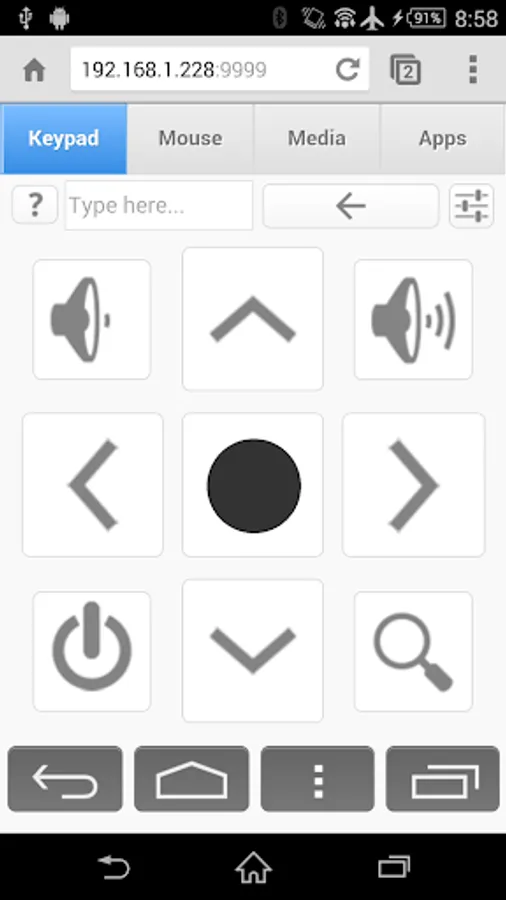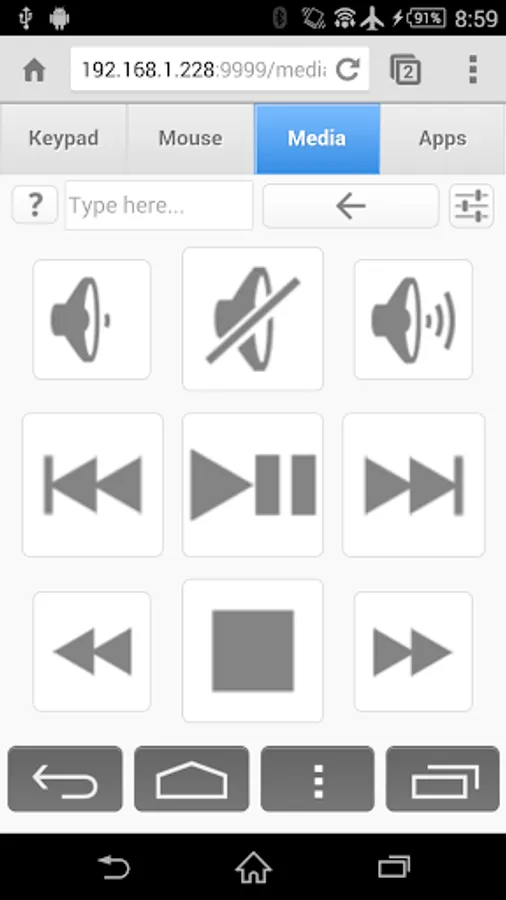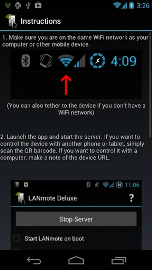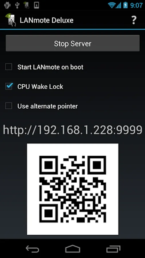 Install and run this server app on the Android device you want to control, scan the QR code or type in the URL shown and you will be able to instantly control your Android device. This is the ONLY cross-platform browser based remote app available for Android devices, an alternative to Droidmote, Tablet Remote, ShareKM and An2An Keyboard app.