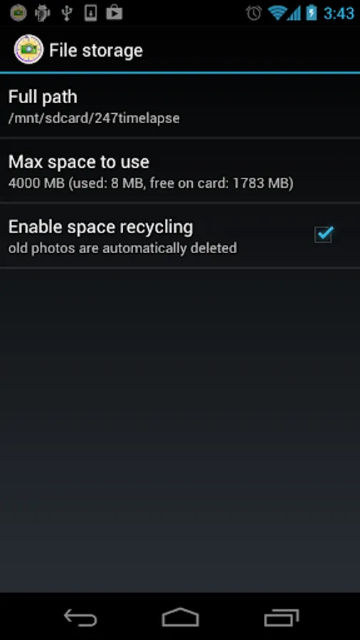 - Automatically recycle sdcard space when full, recycling can be disabled via option