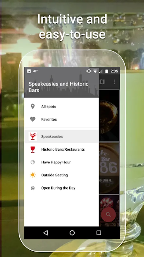 Open the app to find the historic bars and hidden speakeasies. See which of these establishments offer happy hour, which are open during the day, which offer outside seating, and many other practical details.