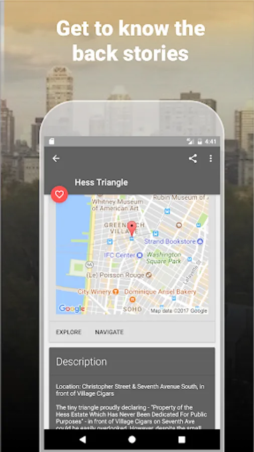 You’ll discover the spots where the Fitzgeralds used to hang, where O’Henry used to drink, and where the Vanderbilts were “wonder building.” This is NOT a tour app, and will not lay out a specific path. Instead, it’ll point out notable landmarks on your way along whichever route you’re already following. Each point of interest specifies its distance from your current location and updates as you move around town. Each POI comes with an address, navigation, and most importantly — a story!