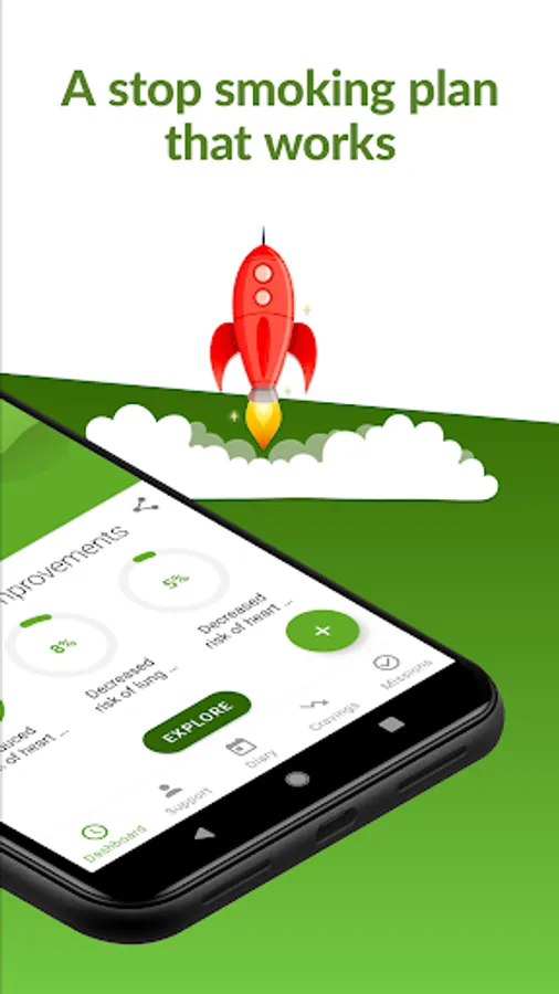 • Health Improvement Bars – Stop for good and see your health progress during your quit smoking journey.