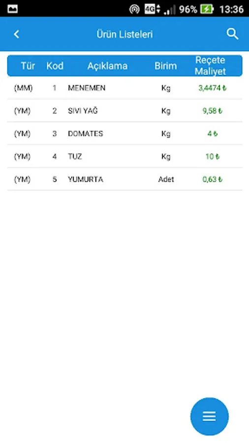 Prescription Cost Cost allows to define 4 types of products. Recipe costs can be achieved by forming the recipes of Finished Products (MM), Semi-Finished Product (SM), Raw Material (HM), Commercial Goods (TM), Products manufactured with these product types.