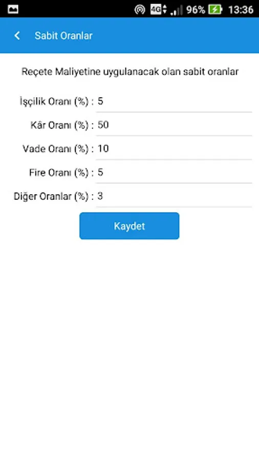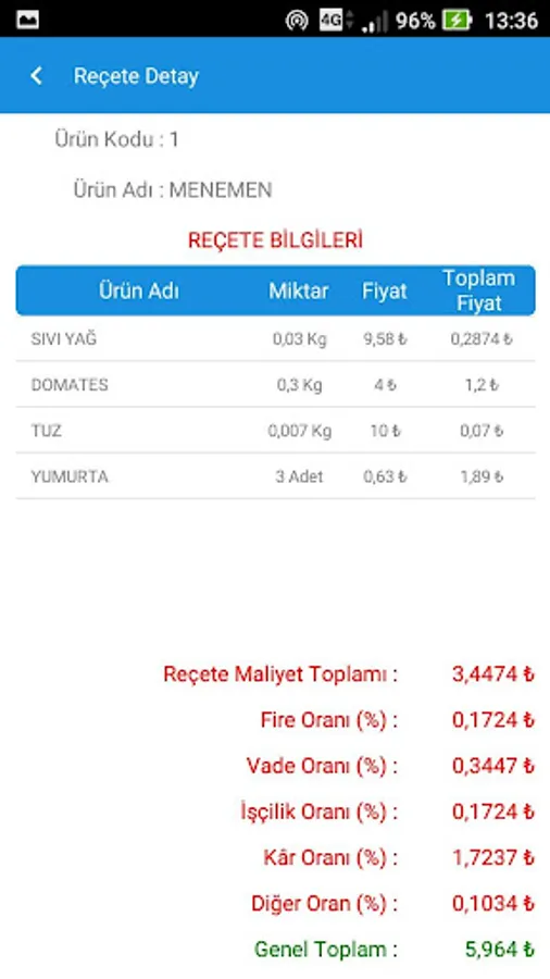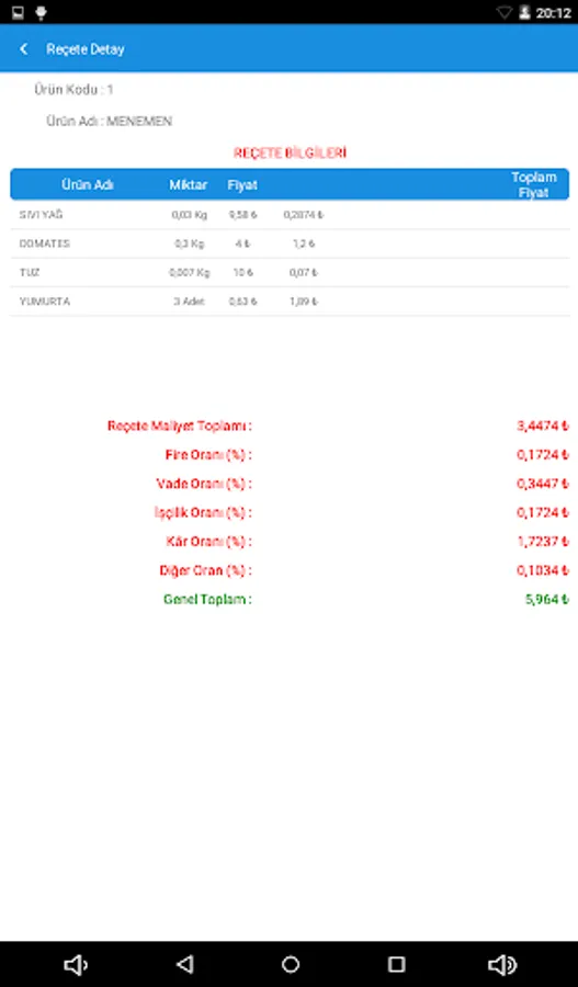 Recipe Cost Cost product prices are updated and you can reach the current prescription costs of your finished products. In addition, labor, profit, maturity, waste and other operating expense rates are defined by applying these rates on the cost of the prescription can reach the final sale price of the product.
