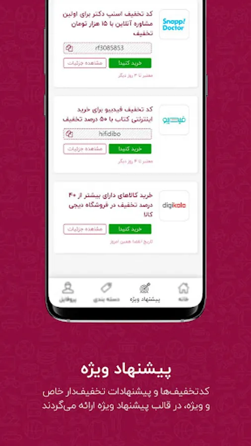 Discount, system for introducing and presenting discount codes and discounted offers for online stores and online service centers such as Digi Kala, Snap, Alibaba, Snaptrip, Snapfood, Chiliuri, Digistyle, Madiseh, Filimo, Cinematict, Fidibo, Niche, Faradres , Franesh, home school, wrench, master craftsman, etc.