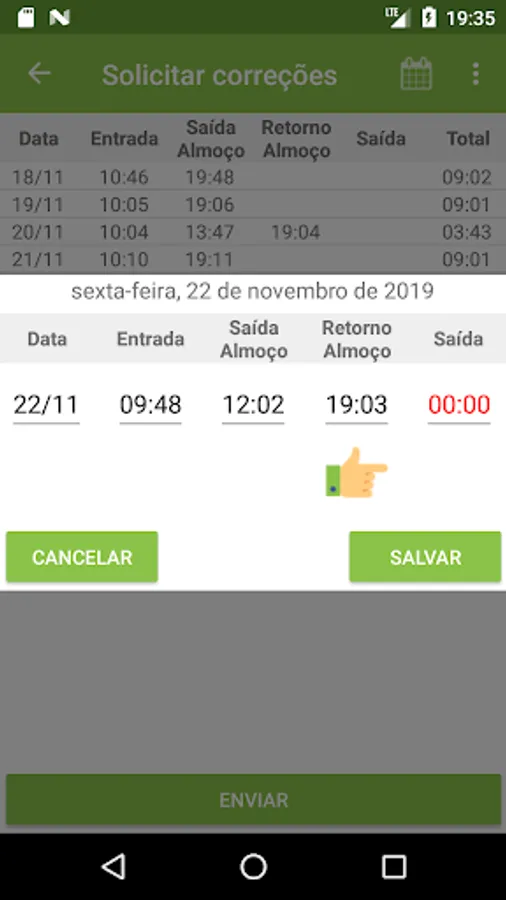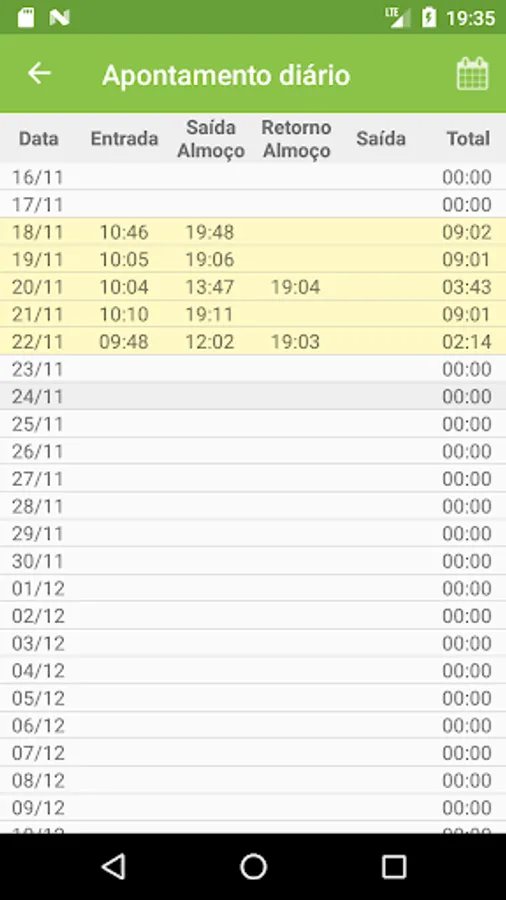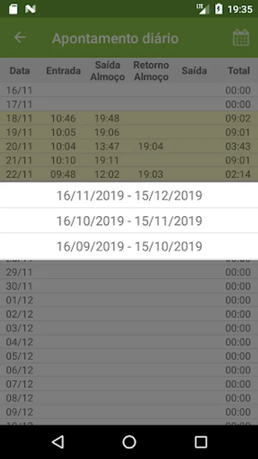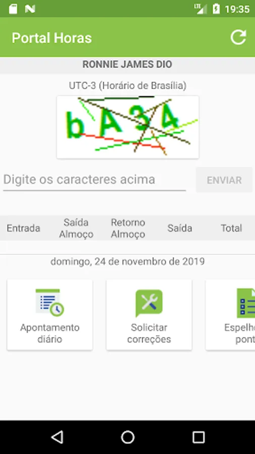 Time registration application in the Horas Portal, displays the point of the day and for up to three periods between the 16th and 15th, time mirror report, lunch and departure reminders, correction correction sent forgotten to correct the responsible manager.
