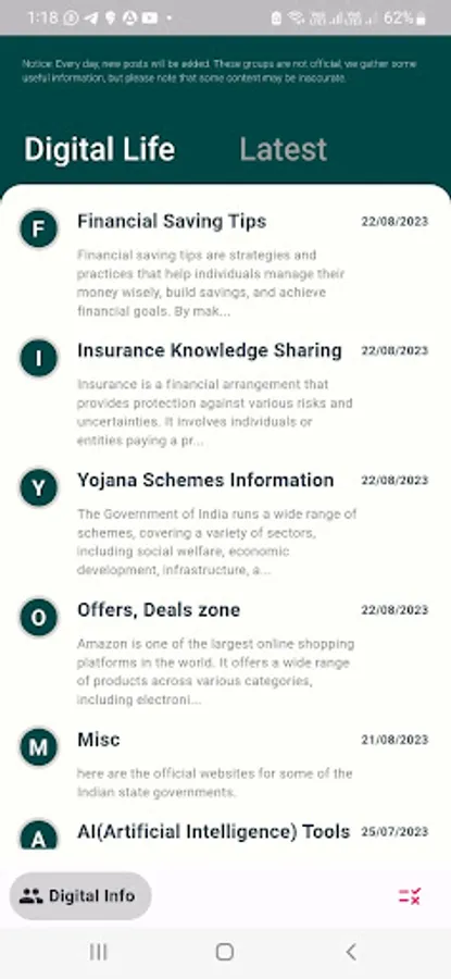 Whether you're a student, a working professional, or simply curious about the world around you, Digital Info is your one-stop app for staying informed about central government schemes, grabbing exciting online offers, and delving into the realm of AI.