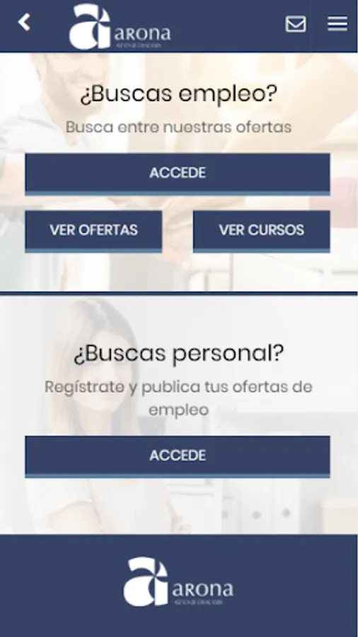 Arona Emplea is an App developed in order to provide citizens with an access point to the services offered by the Employment Agency of the City Council of Arona and thus provide people who demand it, both unemployed and workers, with an adequate job to her CARACTERISTICS.