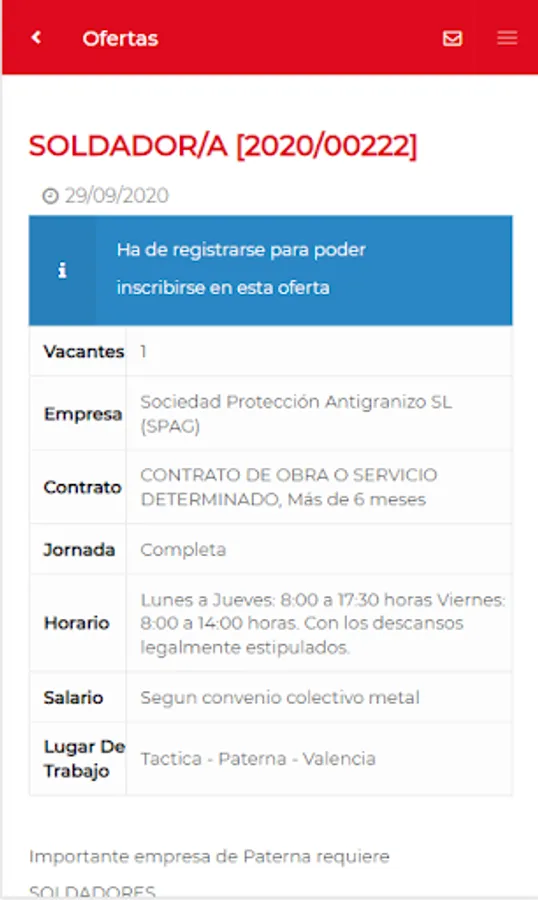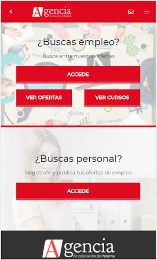 Paterna Employ is an App developed in order to provide citizens with an access point to the services offered by the Paterna City Council Placement agency and thus provide job opportunities to those seeking employment, including in the offer a catalog of training and actions aimed at improving their professional skills.