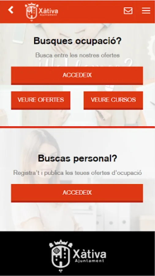 Portalemp Xàtiva is an App developed with the purpose of providing citizens with an access point to the services offered by the Xàtiva City Council location agency and to provide job opportunities to those who are looking for employment, including in the 'offers a catalog of training and actions aimed at improving their professional skills.