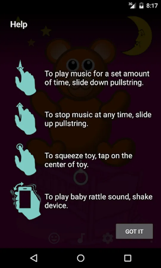 Baby Lullaby is a baby soother and sleep aid app. Soothe baby with sweet music box lullabies and soft soundscapes while offering a calming animated dream show. Just like a real pullstring toy, slide down on the virtual pullstring to start a musical lullaby show.