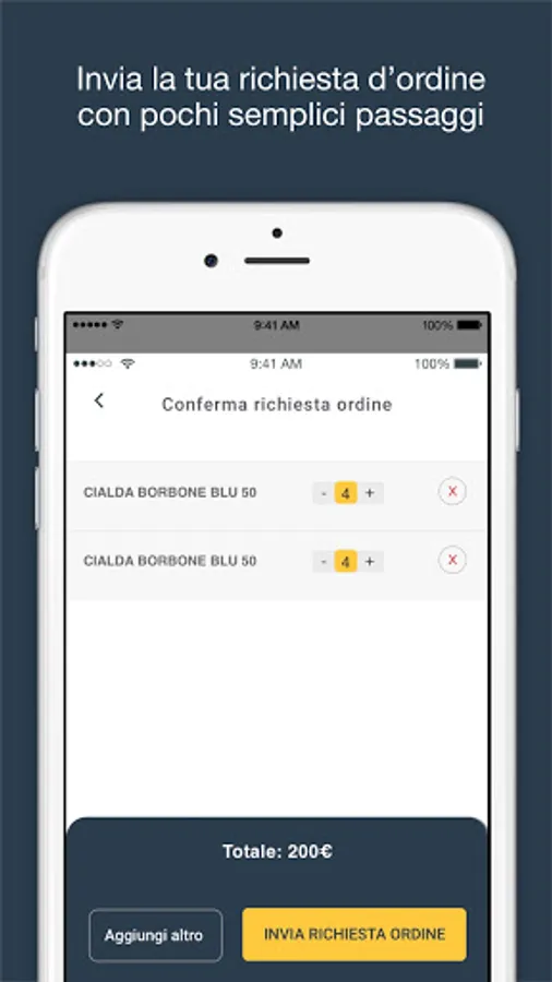 Through the App, customers will be able to place orders in a simple and immediate way, adding the products to the cart by reading the product barcode through the App.
