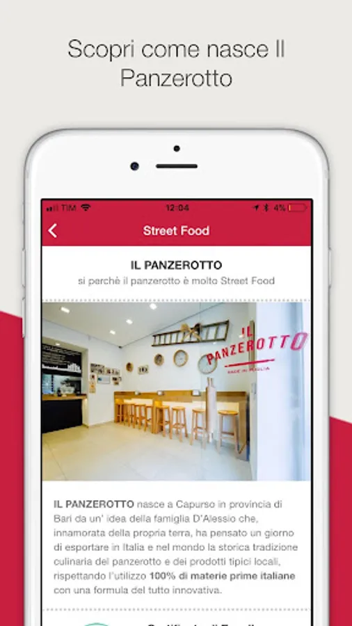 In addition to the App menu you will find the offers of the moment and use the Loyalty Card to receive a panzerotto free.