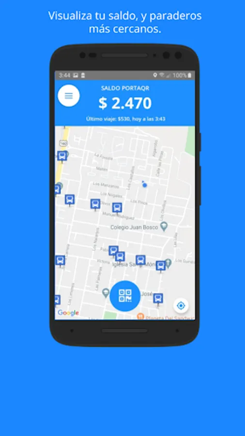 PortaQR is a pilot application developed by Tecsoft Servicios Informáticos, winner of the Bío-Bío Challenge contest in Concepción, Chile. With the application you can load the balance of your device with which you can pay for public transport by bringing the QR code to the readers you will find on the bus lines in San Pedro de la Paz.