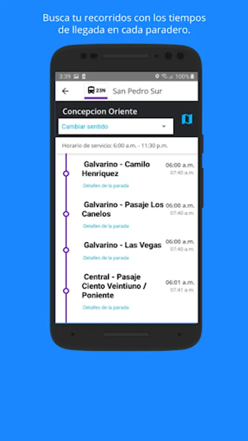 -Visualizar buses in real time, which will allow you to know where the bus comes to wait in a timely manner at your whereabouts.