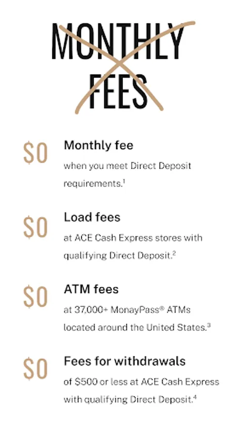 37,000+ FEE-FREE ATMs: Withdraw money for no fee at MoneyPass® ATMs.³ They’re easy to find in the app.