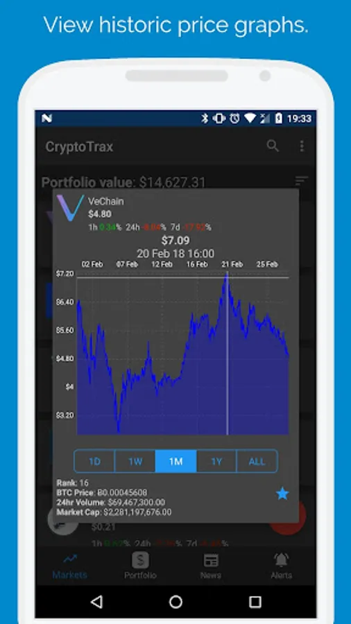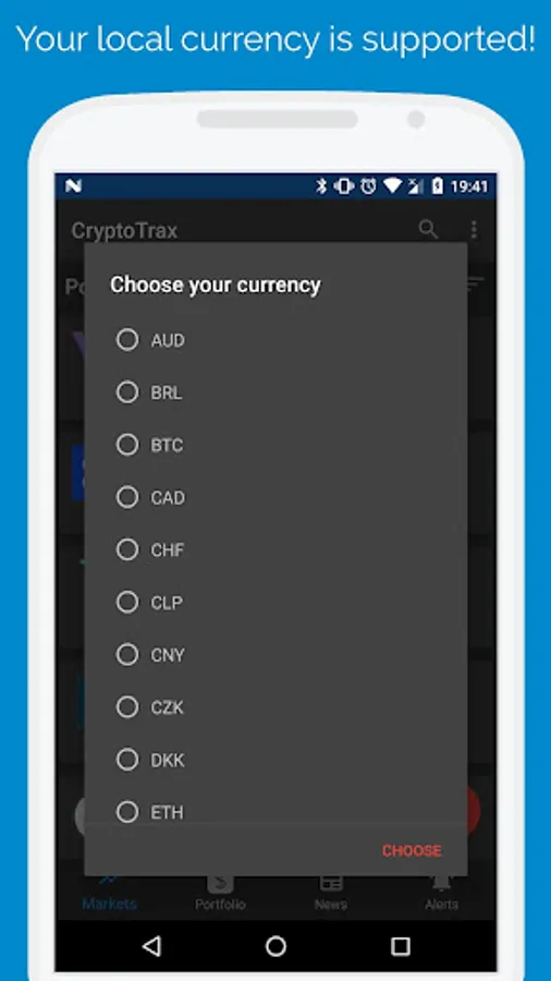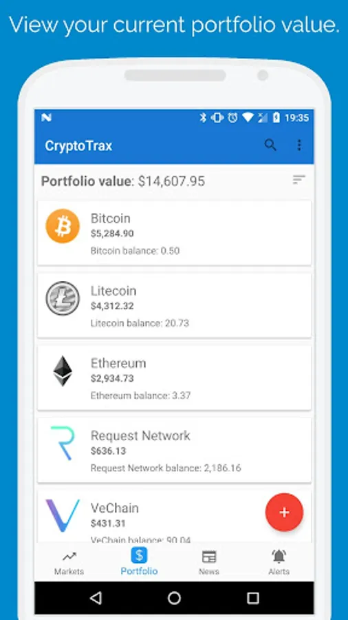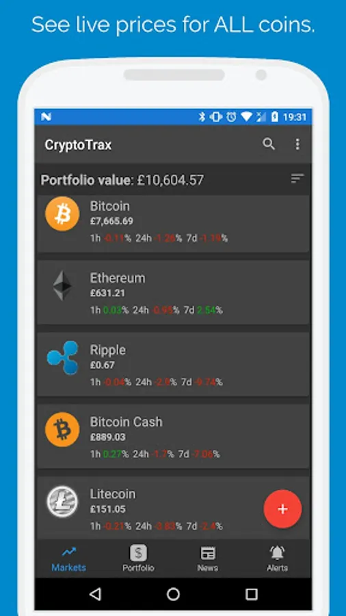 CryptoTrax is a simple Bitcoin & cryptocurrency portfolio app and market tracker that totals your crypto holdings against live prices.