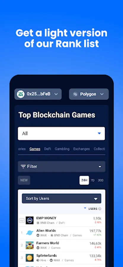 * Welcome Lite Rankings. For now, we’re including a light version of our Ranking dapps as a list to go on the go. More to come.