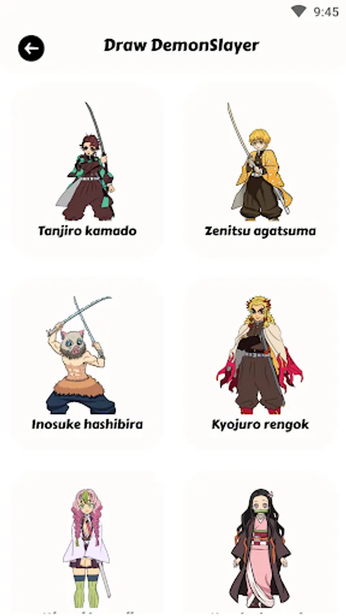 This app is designed to help you develop your drawing skills and create gorgeous draws of characters like Tanjiro Kamado,Nezuko, Zenitsu, Mitsuri and many more, whether you're a beginner or an expert artist.