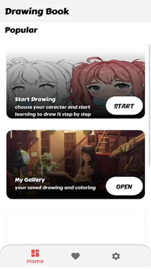 AniDrw can be downloaded on Android devices. Upon opening the app, users will be welcomed with a home screen that displays a variety of options for learning how to draw anime characters.