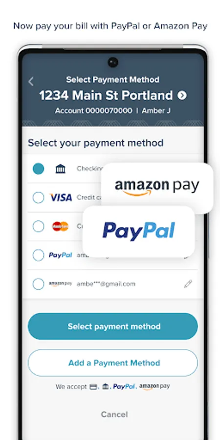 • Get paperless bills, pay or schedule a future payment with your preferred method: credit/debit card, bank account, PayPal or AmazonPay