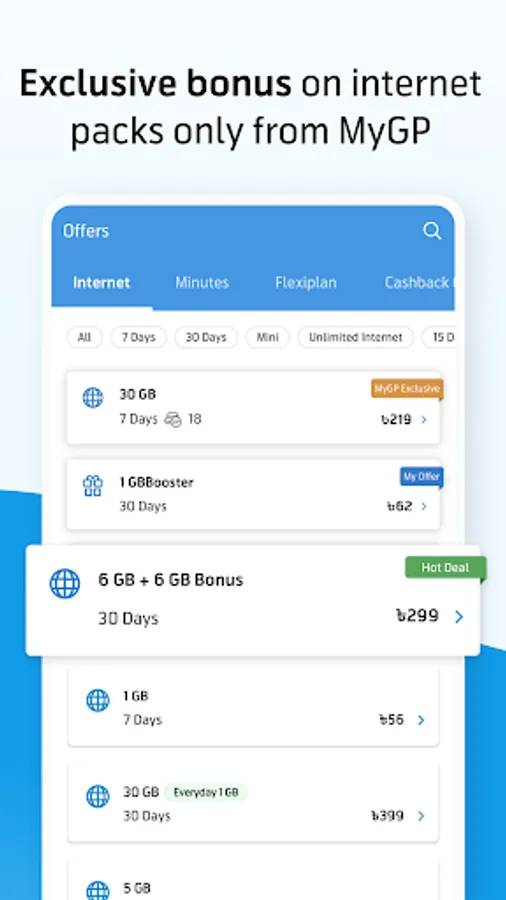 MyGP is the ultimate Grameenphone self-service app for all your telecommunication needs. With MyGP you can avail any internet or minute offer with simple easy steps. There is no longer any need to memorize difficult and complicated codes to activate offers or call the hotline to get customer service.