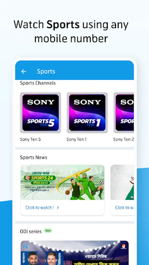 Alongside these services you can go beyond telecommunication and watch your movies, TV series, live sports, and the latest news. Watch Shakib Al Hasan and the Bangladesh cricket team as they play the best countries. Or you can enjoy Messi, Ronaldo, Neymar and the other best footballers take to the field in the English Premier League, La Liga and the Champions League.