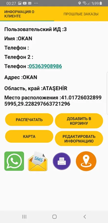 Откроется выбор. Заказ отправляется на служебный автомобиль.