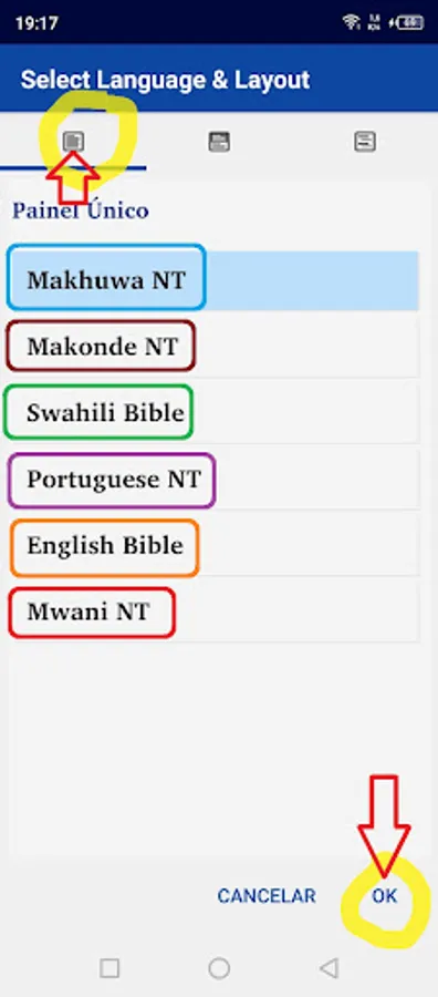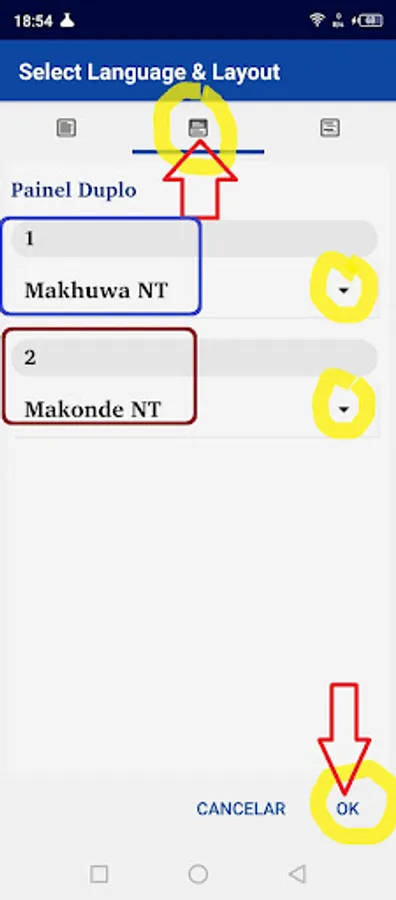 - "two panes" to display the Makhuwa at the top and the Makonde or Swahili or Portuguese, or English or the Mwani version at the bottom