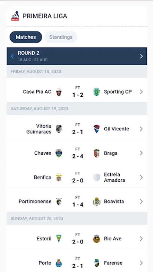 Welcome to Portuguese League LiveScores, your ultimate app for real-time updates on Portuguese League match results. Immerse yourself in the world of Portuguese football and never miss a goal, assist, or thrilling moment in the league. Whether you're a passionate fan or just curious about the teams, our app provides comprehensive coverage, player statistics, and team standings. Stay informed about match outcomes, upcoming fixtures, and match timings using our Portuguese League Schedule Tracker. Experience the excitement of Portuguese football with live scores and timely updates. Download now and enjoy Portuguese League matches like never before