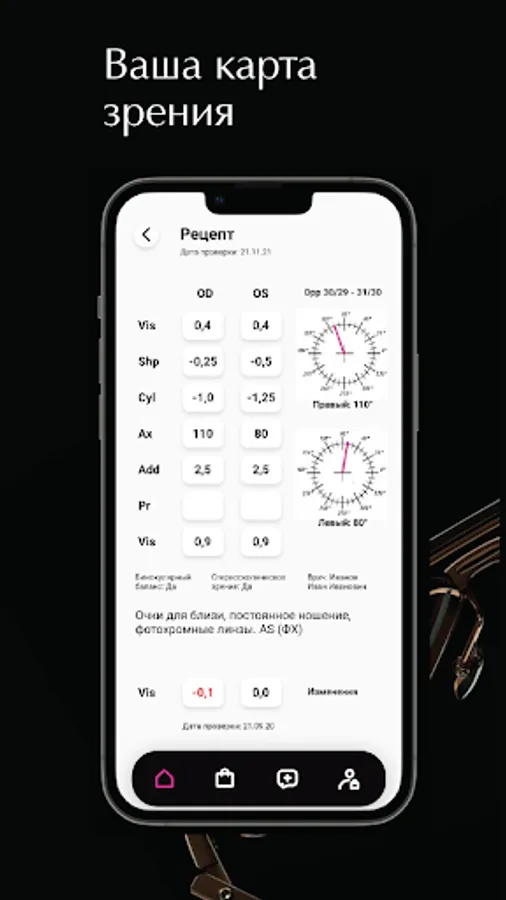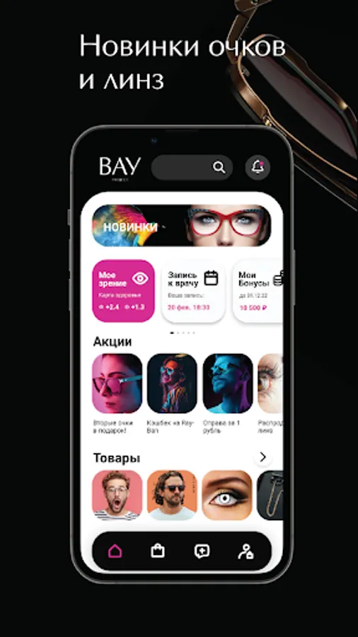 Optics Bay is always with you. Your personal vision map. your bonuses. Doctor's appointment. Feedback. Glasses and lenses of world brands.