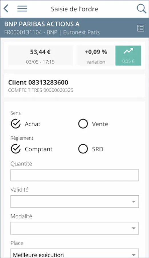 - You place your spot or SRD stock market orders on the French and foreign markets
